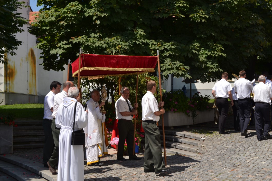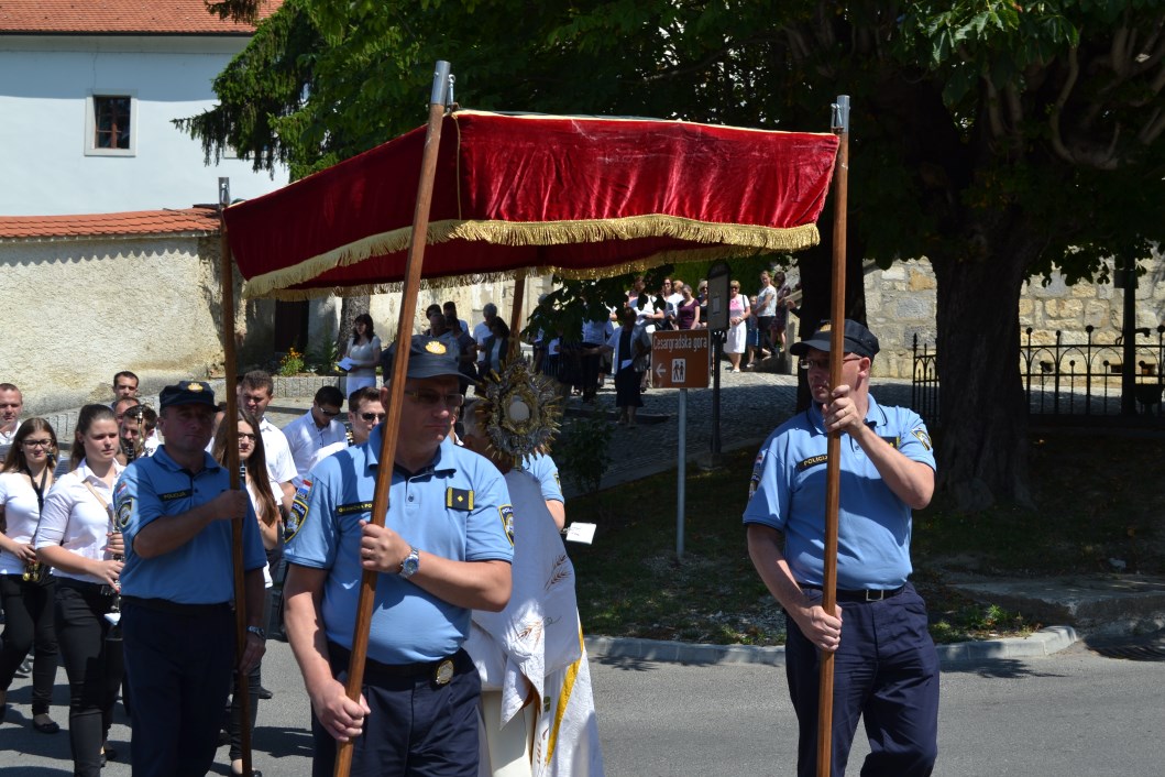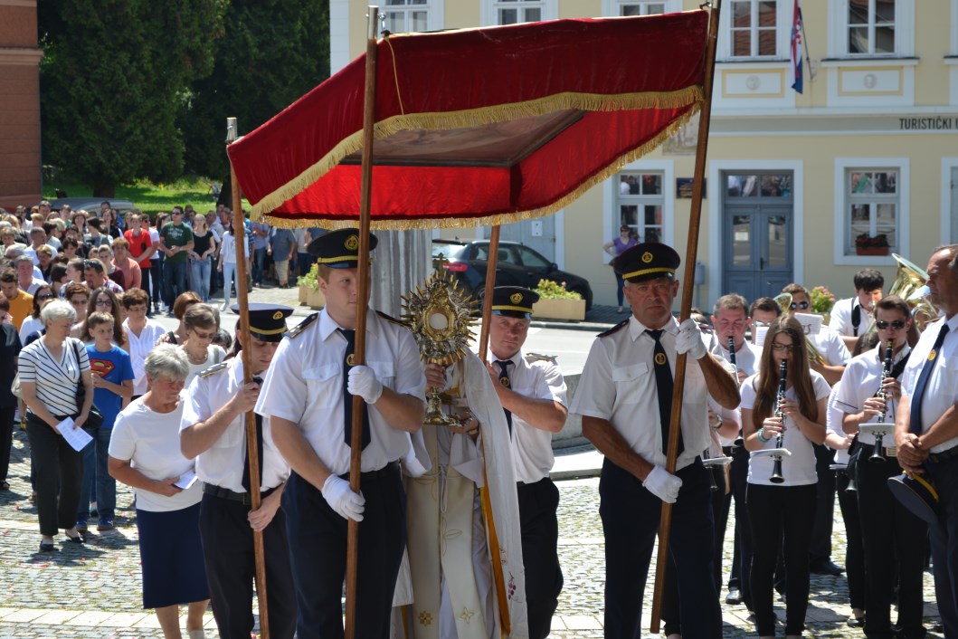 DSC_0067Na blagdan Tijelova u Klanjcu već je postala tradicija sudjelovanje u tijelovskoj procesiji klanječkih udruga. Među najbrojnijim sudionicima  svakako su vatrogasci iz svih vatrogasnih društava VZ Grada Klanjca. Vatrogasci imaju i svoju sjenicu koju za tu priliku uređuju članovi DVD-a Klanjec a ona je uvijek i najuređenija sa prepoznatljivim vatrogasnim obilježjima pa je tako bilo i ove godine. Nebo u procesiji dio puta do vatrogasne sjenice nose vatrogasci a ove godine nosili su četiri člana, po jedan iz  DVD-a Rakovca, Lučelnice, „Mihanović“ Gredica i Klanjca. Prekrasno vrijeme i Puhački orkestar Mrzlo Polje učinili su da je ovogodišnje Tijelovo bilo posebno svečano. Nakon procesije i službenog završetka u crkvi u lovačkom domu LD „Kuna“ Klanjec na Brozovom brijegu bila je upriličena okrepa i zakuska za članove svih udruga sudionika u procesiji: lovaca, vatrogasaca, policije, članova župskog vijeća koji su i sami svaki na svoj način sudjelovali u troškovima. Svakako da su bili pozvani i članovi puhačkog orkestra koji su nakon zakuske odsvirali još nekoliko glazbenih točaka.