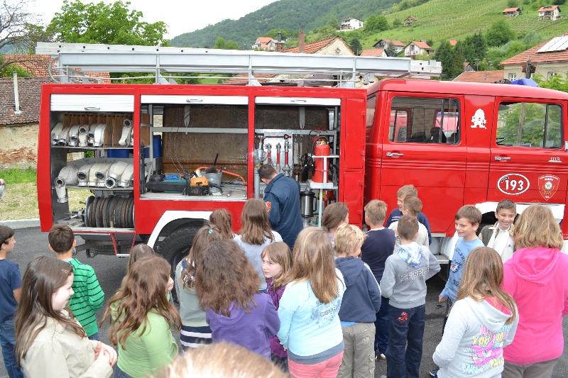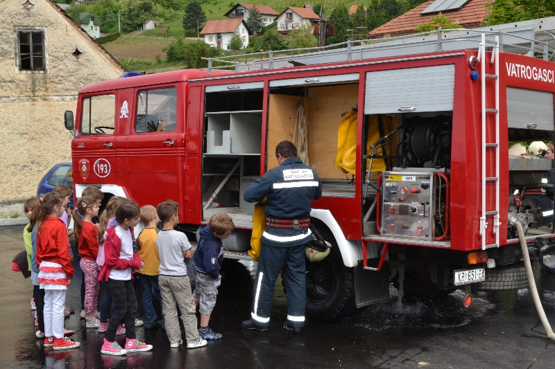 Djecu su dočekali vatrogasci DVD-a Klanjec, te dežurna smjena Zagorske javne vatrogasne postrojbe. Najprije su kroz kraće predavanje upoznata sa osnovnim pojmovima vezanima za vatrogasce, a zatim su im vatrogasci demonstrirali gašenje požara.