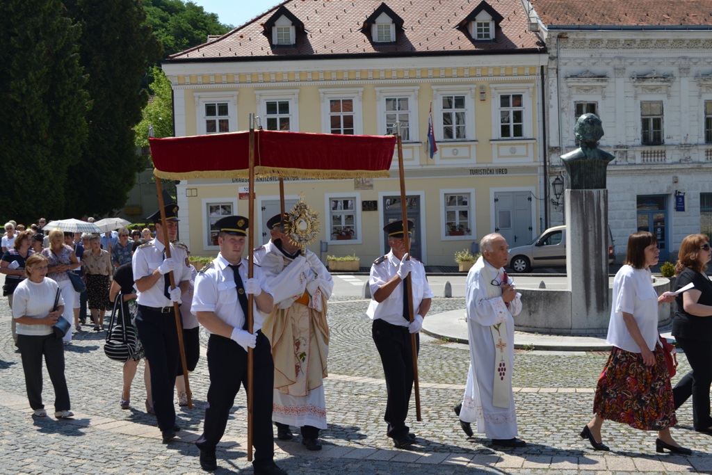 Blagdan Tijelova u Klanjcu proslavljen svečanom svetom misom i Tijelovskom procesijom ulicama stare jezgre Grada Klanjca. U procesiji tradicionalno sudjeluju vatrogasci iz cijele vatrogasne zajednice grada Klanjca: DVD Rakovec, DVD Lučelnica, DVD „Mihanović“ Gredice i DVD Klanjec čiji članovi uređuju vatrogasnu sjenicu. Vatrogasce je predvodio i zapovijedao ešalonom zapovjednik VZG Klanjec Ivan Zamuda. Uz vatrogasce na procesiju su sudjelovali te nosili nebo iznad Presvetog članovi lovačkog društva „Kuna“ Klanjec te članovi župskog pastoralnog i ekonomskog vijeća. Svetu misu i procesiju predvodio je klanječki kapelan pater Gordan Propadalo uz asistenciju župnika patra Franje i veleč. Franje Glasa, svećenika u miru. Članovi puhačkog orkestra iz Mrzlog Polja, koji tradicionalno sudjeluju na procesiji, svojom glazbom uveličali su svečanost Tijelova prije mise na trgu ispred crkve, sviranjem na samoj procesiji te izvođenjem hrvatske himne Lijepa naša na završetku procesije. U Klanjcu je tradicija da sve svečanosti u završavaju Lijepom našom. Nakon svečanosti priređeno je druženje uz lovački gulaš u lovačkom domu na Brozovom bregu za sve sudionike.